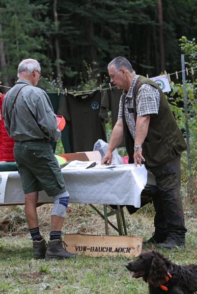 Besonders erfreulich war die hohe Zahl an teilnehmenden Kindern, die mit ihren Eltern zum Sommerfest gekommen waren. Für die Betreuung der Kleinen hatte das Orgateam zwei engagierte Fachkräfte gewinnen können. Und so wurde am Kindertisch nach Herzenslust gebastelt und gemalt. Wer lieber draußen unterwegs war, nutzte die Gelegenheit, den Wald rund um die Jagdhütte zu erkunden oder den Welpen beim Spielen zuzusehen. Für Erstlingsführer und Rasseinteressierte bot ein Infostand zudem spannende Einblicke in Ausbildung, Prüfung und Ausrüstung. Besonders erfreulich war das große Interesse vieler junger, zukünftiger Hundeführer, die den Tag nutzten, um sich zu informieren und Kontakte zu knüpfen. Auch der „Bauchladen“, betreut durch den Vorsitzenden der Landesgruppe Johannes Lehnert, war aufgebaut. Mancher versorgte sich hier mit neuen Aufklebern oder einer Prüfungsordnung.