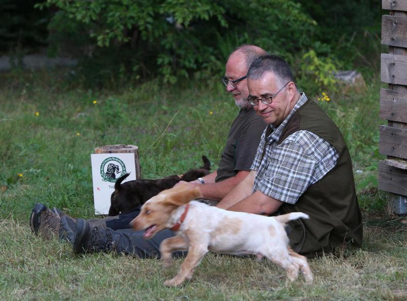 Bei bestem Wetter und sommerlichen Temperaturen erwartete die Gäste ein vielfältiges Programm. So konnten sich die zahlreich angereisten Welpen im eingezäunten Bereich rund um die Jagdhütte austoben. Zusätzlich wurde ein abwechslungsreicher Prägungsparcours mit Wackelbrett, Wippe und weiteren Stationen angeboten. Dieser wurde nicht nur von den Junghunden, sondern auch von einigen älteren Vierbeinern angenommen. Ergänzt wurde das Angebot durch eine Station mit Reizangel sowie eine Pendelsau. Beide Stationen wurden ebenfalls angenommen.